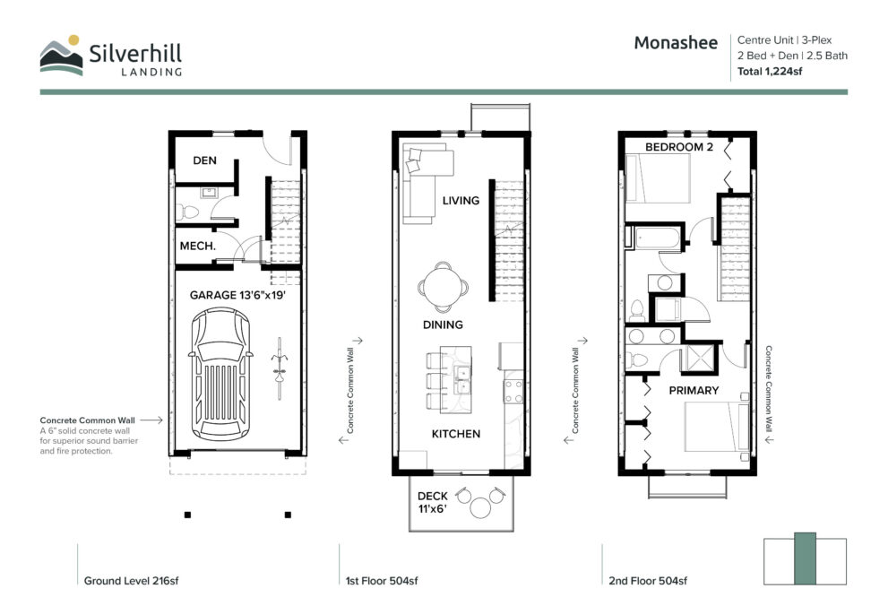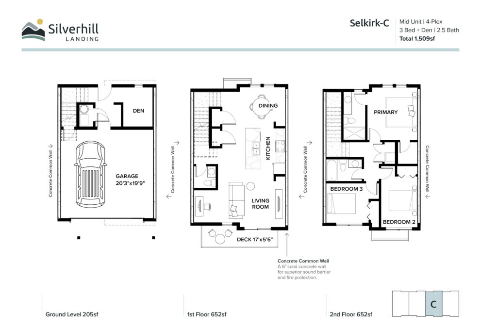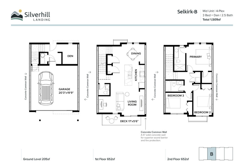 Mid Unit | 4-Plex | 3 Bed + Den | 2.5 Bath | 1,509sf