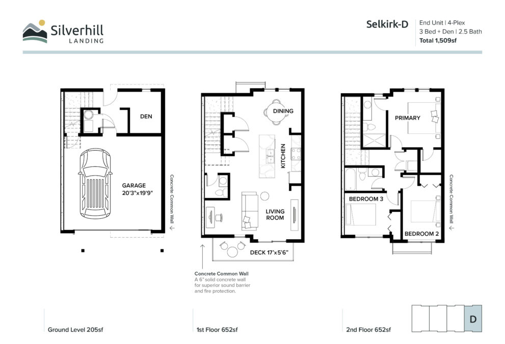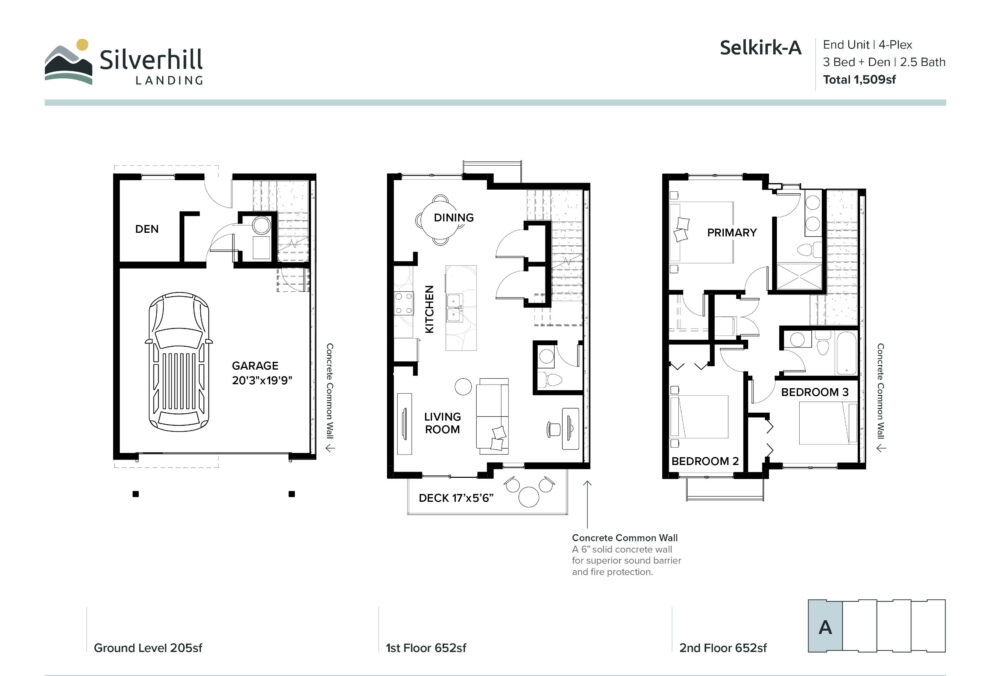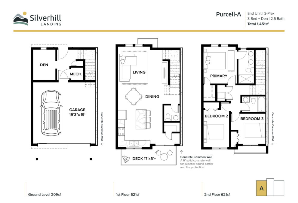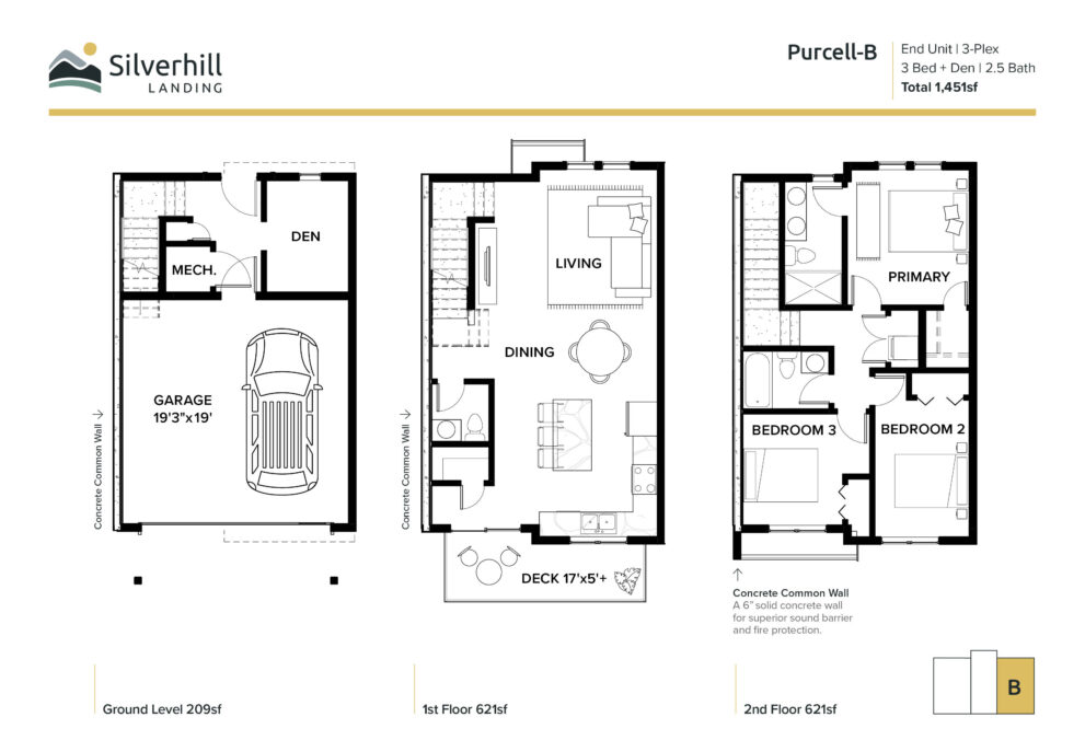 End Unit | 3-Plex | 3 Bed + Den | 2.5 Bath | Total 1,451sf